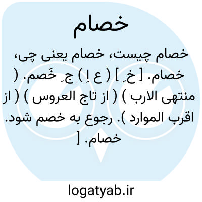خصام. [ خ ِ ] ( ع مص ) مصدر دیگر برای مخاصمه است. ( منتهی الارب ) ( از تاج العروس ) ( از اقرب الموارد ). با کسی خصومت کردن. ( زوزنی ). با کسی داوری کردن. ( تاج المصادر بیهقی ). داوری، جدال. مجادله. ( یادداشت بخط مؤلف ): او من ینشوء فی الحلیة و هو فی الخصام ( قرآن 43 / 17 ). پانزده مربط فیل که او را از بهر ذخیره ایام و عدت اوقات خصام اندوخته بود بستد. ( ترجمه تاریخ یمینی ).