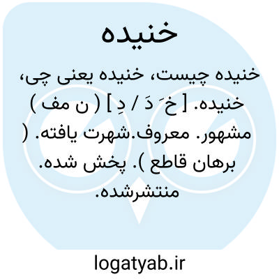 خنیده. [ خ َ دَ / دِ ] ( ن مف ) مشهور. معروف.شهرت یافته. ( برهان قاطع ). پخش شده. منتشرشده. عالمگیرشده. جهانگیرشده. ( یادداشت بخط مؤلف ):