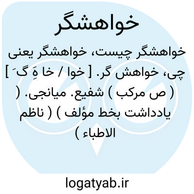 خواهش گر. [ خوا / خا هَِ گ َ ] ( ص مرکب ) شفیع. میانجی. ( یادداشت بخط مؤلف ) ( ناظم الاطباء ):
