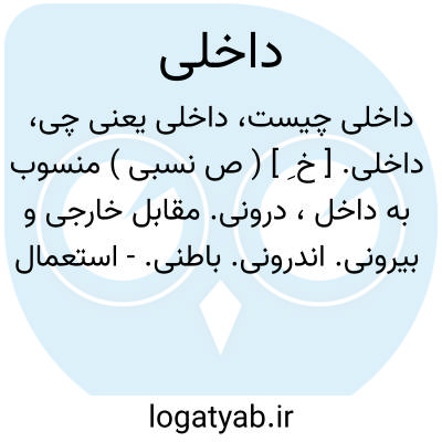 (خِ ) [ ع - فا. ] (ص نسب. ) ۱ - درونی، اندرونی. ۲ - مربوط به داخل یک کشور یا یک ناحیه یا یک مؤسسه و غیره.
