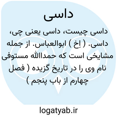 داسی. ( اِخ ) ابوالعباس. از جمله مشایخی است که حمداﷲ مستوفی نام وی را در تاریخ گزیده ( فصل چهارم از باب پنجم ) آورده است. ( تاریخ گزیده چ اروپا ص 795 ).