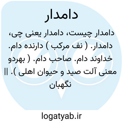 دامدار. ( نف مرکب ) دارنده دام. خداوند دام. صاحب دام. ( بهردو معنی آلت صید و حیوان اهلی ). || نگهبان دام. حافظ دام ( بهر دو معنی تور و آلت صید، و حیوان اهلی ). || صیاد. شکارکننده بدام. دامیار: