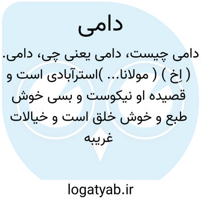 دامی. ( اِخ ) ( مولانا... )استرآبادی است و قصیده او نیکوست و بسی خوش طبع و خوش خلق است و خیالات غریبه دارد و این مطلع از اوست: