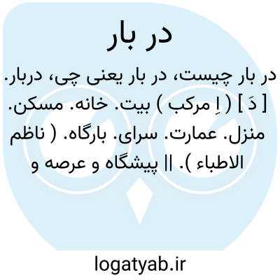 که برگردد آید به دربار اوی.فردوسی. || مجلس شوری. || دیوان عام. ( ناظم الاطباء ). || در خانه دولتی. || ( به اضافت )؛ در بارگاه. در و مدخل جای بار دادن: