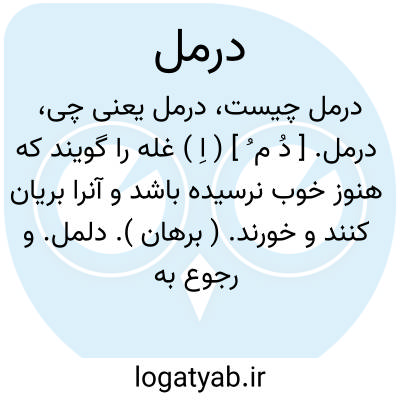 درمل. [ دُ م ُ ] ( اِ ) غله را گویند که هنوز خوب نرسیده باشد و آنرا بریان کنند و خورند. ( برهان ). دلمل. و رجوع به دلمل شود.