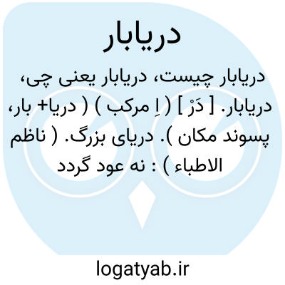 دریابار. [ دَرْ ] ( اِ مرکب ) ( دریا+ بار، پسوند مکان ). دریای بزرگ. ( ناظم الاطباء ):