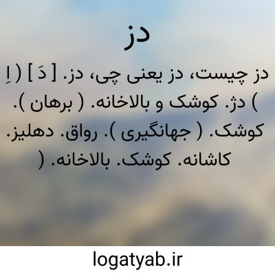 دز. [ دَ ] ( اِ ) دژ. کوشک و بالاخانه. ( برهان ). کوشک. ( جهانگیری ). رواق. دهلیز. کاشانه. کوشک. بالاخانه. ( ناظم الاطباء ):