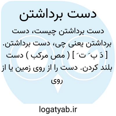 دست برداشتن. [ دَ ب َ ت َ ] ( مص مرکب ) دست بلند کردن. دست را از روی زمین یا از روی چیزی بالا بردن و بلند کردن: