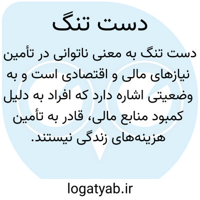 عبارت دست تنگ به معنای ناتوانی در تأمین نیازهای مالی و اقتصادی است. این اصطلاح به وضعیتی اشاره دارد که فرد یا خانواده به دلیل کمبود منابع مالی، قادر به تأمین هزینههای زندگی و نیازهای اولیه نیستند. به عبارتی، دست تنگ به نوعی نمایانگر فقر و محدودیتهای مالی است که افراد در زندگی روزمره با آن مواجه میشوند.