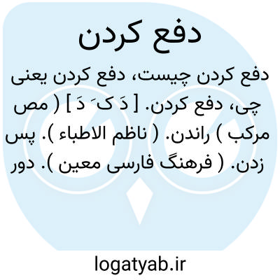 ۱ - ( مصدر ) راندن پس زدن: [[ دشمن را دفع کرد ]]. ۲ - دور کردن. ۳ - مخالفت کردن منع کردن ( دفع ). ۴ - بیرون کردن ( فضولات ): [[ هر چه خورده بود دفع کرد ]] ۵ - ( صفت ) موجب دفع برطرف کننده: [[ ای باد از آن باده نسیمی بمن آور کان بوی شفا بخش بود دفع خمارم ]] ( حافظ ).