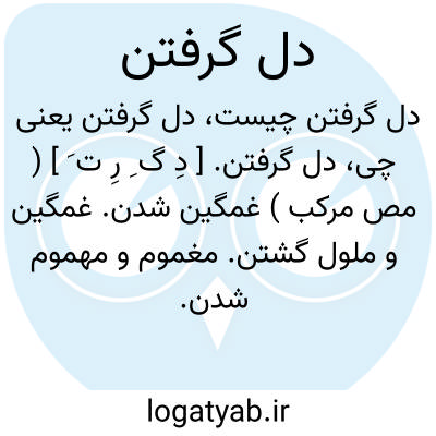 دل گرفتن. [ دِ گ ِ رِ ت َ ] ( مص مرکب ) غمگین شدن. غمگین و ملول گشتن. مغموم و مهموم شدن. محزون و اندوهناک شدن. دلتنگ شدن. متأثر و ناراحت و اندوهگین گشتن بر اثر غربت و درد وطن یا فراق عزیزان و نظایر آن. و نیز متأثر شدن از حرف زننده کسی. ( از فرهنگ لغات عامیانه ): دلم گرفته است؛ محزونم. اندوهناکم: