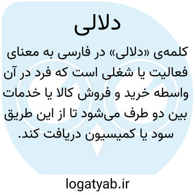 کلمه‌ی «دلالی» در فارسی به معنای فعالیت یا شغلی است که فرد در آن واسطه خرید و فروش کالا یا خدمات بین دو طرف می‌شود تا از این طریق سود یا کمیسیون دریافت کند. این واژه از ریشه «دلال» گرفته شده است؛ «دلال» به کسی گفته می‌شود که نقش واسطه را در معاملات بر عهده دارد و خرید و فروش را تسهیل می‌کند. «دلالی» به فعالیت یا عمل انجام‌شده توسط دلال اشاره دارد و می‌تواند شامل بازارهای رسمی و غیررسمی باشد. در اقتصاد و تجارت، دلالی معمولاً به عمل کسانی گفته می‌شود که بدون تولید مستقیم کالا، با ایجاد ارتباط میان فروشنده و خریدار سود می‌برند. در ادبیات فارسی، این واژه گاهی بار معنایی منفی پیدا کرده و به واسطه‌گری‌های غیرمنصفانه یا سودجویانه اشاره می‌کند. از نظر اجتماعی، دلالی می‌تواند هم نقش مفید در روان کردن جریان بازار داشته باشد و هم باعث نوسانات قیمتی یا سوءاستفاده شود. در مکالمات روزمره، این واژه برای توصیف معاملات واسطه‌ای، خرید و فروش املاک، خودرو، ارز یا کالاهای مختلف به کار می‌رود. هم‌معنی‌هایی مانند واسطه‌گری، خرید و فروش واسطه‌ای و تجارت غیرمستقیم برای آن وجود دارد.
