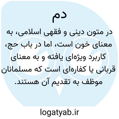 واژه «دَم» در متون دینی و فقهی اسلامی، به معنای خون است، اما در باب حج، کاربرد ویژه‌ای یافته و به معنای قربانی یا کفاره‌ای است که مسلمانان موظف به تقدیم آن هستند. این اصطلاح در احکام مرتبط با اعمال حج، مانند جبران برخی تخلفات یا انجام مناسک خاص، به کار می‌رود. علاوه بر این معنا، در معنای لغوی، «دَم» به طور کلی به خون اشاره دارد، همان‌طور که در منابعی مانند «ویکی الکتاب» ذکر شده است.