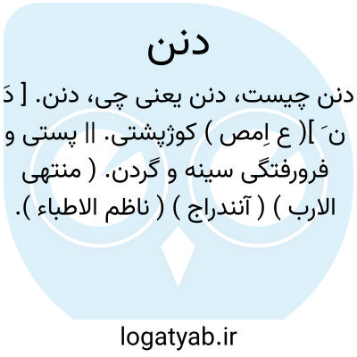 دنن. [ دَ ن َ ]( ع اِمص ) کوژپشتی. || پستی و فرورفتگی سینه و گردن. ( منتهی الارب ) ( آنندراج ) ( ناظم الاطباء ).