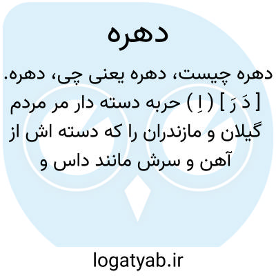دهره. [ دَ رَ ] ( اِ ) حربه دسته دار مر مردم گیلان و مازندران را که دسته اش از آهن و سرش مانند داس و در غایت تیزی است که بدان درخت تیز اندازند. ( از ناظم الاطباء ) ( از آنندراج ) ( از برهان ) ( از فرهنگ جهانگیری ):