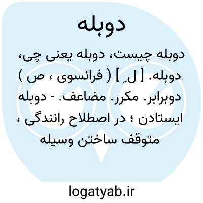 (بْ لِ ) [ فر. ] (اِ. ) ۱ - فیلم ترجمه شده، دوبلاژ. ۲ - توقف اتومبیلی به موازات اتومبیل دیگر. ۳ - به شکل دو برابر.