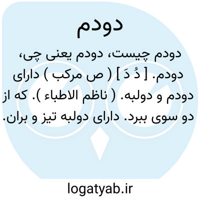 دودم. [ دُ دَ ] ( ص مرکب ) دارای دودم و دولبه. ( ناظم الاطباء ). که از دو سوی ببرد. دارای دولبه تیز و بران. دودمه. دولبه.