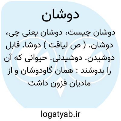 دوشان. ( ص لیاقت ) دوشا. قابل دوشیدن. دوشیدنی. حیوانی که آن را بدوشند: