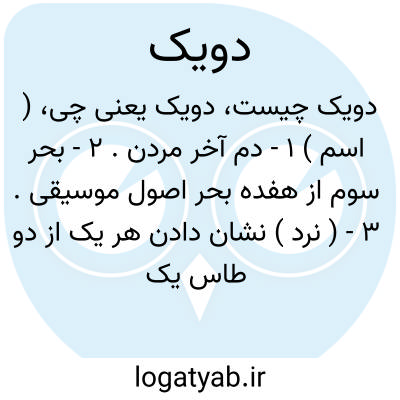(دُ یَ ) (اِمر. ) ۱ - کنایه از: دم آخر مردن. ۲ - بحر سوم از هفده بحر اصول موسیقی. ۳ - نشان دادن هر یک از دو طاس یک خال را در بازی تخته نرد.