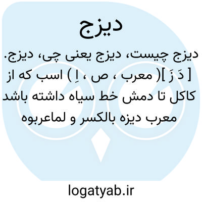 ۱ - دیز. ۲ - چاروایی که رنگش سیاه باشد اسبی که قوایم اش سیاه باشد.