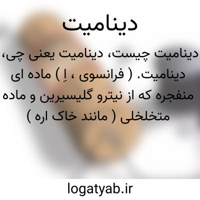دینامیت. ( فرانسوی، اِ ) ماده ای منفجره که از نیترو گلیسیرین و ماده متخلخلی ( مانند خاک اره ) تشکیل یافته است و اغلب دارای نیترات آمونیوم یا نیترات سودیوم یا گاهی یکی از کربونها نیز هست. انفجار بوسیله چاشنی بعمل می آید. دینامیت را «آ.ب.نوبل » کشف کرد. ( 1866م. ). ( دائرة المعارف فارسی ).
