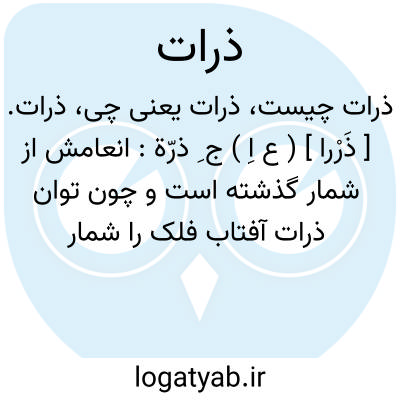 ( اسم ) ۱ - مورچه مور خرد. ۲ - هر جز و غبار منتشر در هوا و جز آن. ۳ - مقیاسی است معدال یک صدم جو جمع ذر ذرات.