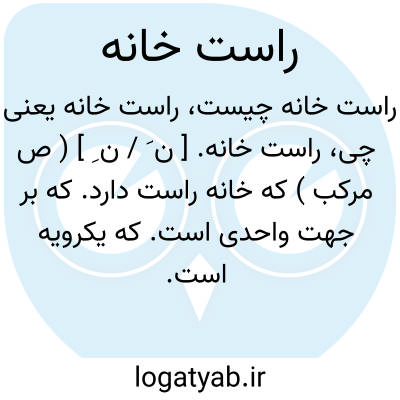 راست خانه. [ ن َ / ن ِ ] ( ص مرکب ) که خانه راست دارد. که بر جهت واحدی است. که یکرویه است. آدم راست و امین را گویند و در اصطلاح کسی را گویند که با همه کسی از قرار راستی و درستی معاش کند. ( آنندراج ) ( انجمن آرا ). کسی که با همه کس از روی راستی و درستی ودیانت و امانت معاش کند. ( ناظم الاطباء ) ( برهان ). به معنی کسی که راست و درست باشد. ( غیاث ):