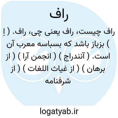 راف. [ راف ف ] ( ع ص ) اعتناکننده. ( از اقرب الموارد ): ماله حاف و لا راف؛ اتباع است یعنی کسی نیست که به او اعتنا کند. ( از اقرب الموارد ). نه کسی گرد او میگردد و نه به وی اعتنا میکند. ( ناظم الاطباء ).