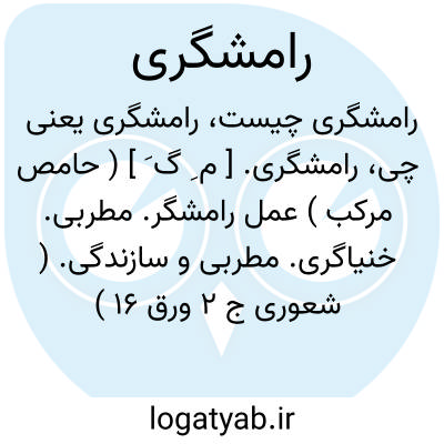 رامشگری. [ م ِ گ َ ] ( حامص مرکب ) عمل رامشگر. مطربی. خنیاگری. مطربی و سازندگی. ( شعوری ج 2 ورق 16 ):