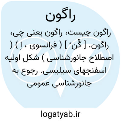 راگون. [ گُن ْ ] ( فرانسوی، اِ ) ( اصطلاح جانورشناسی ) شکل اولیه اسفنجهای سیلیسی. رجوع به جانورشناسی عمومی دکتر فاطمی ص 336 شود.