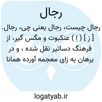 رجال. [ رَ ] ( اِ ) عنکبوت و مگس گیر، از فرهنگ دساتیر نقل شده، و در برهان به زای معجمه آورده همانا سهو کرده. ( انجمن آرا ) ( آنندراج ). و رجوع به زجال در برهان شود.