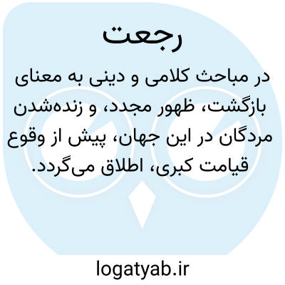 || رستاخیز. || نزد بعضی شیعه بازگشت امام پس از مرگ او. ( یادداشت مرحوم دهخدا ). نزد بعضی دیگر از شیعه بازگشت امام است پس از غیبت او. ( یادداشت مرحوم دهخدا ). بازگشت امام دوازدهم. ( یادداشت مرحوم دهخدا ). || بازگشت عیسی به دنیا در آخرالزمان. ( یادداشت مرحوم دهخدا ). || مذهب رجعت؛ اعتقاد به بازگشت حضرت رسول ( ص ). در حبیب السیر آمده است: راویان اخبار نوشته اند که ابن السواد که به عبداﷲ سبا اشتهار دارد و در سلک علمای یهود منتظم بود زمان عثمان اظهار شعار اسلام کرد و از او رنجیده خاطر گشت و به مصر شتافت و در سنه 35 هَ. ق. در آن ولایت به آتش افروزی پرداخت و با بعضی از مصریان گفت: مرا عجب می آید از برخی که تصدیق رجعت عیسی بدنیا می کنند ولی تجویز بازگشتن خاتم الانبیاء نمی نمایند و این آیه کریمه را که «ان الذی فرض علیک القرآن لرادک الی معاد» ( قرآن 85/28 ) شاهد مدعای باطل خود گردانید، طایفه ای از مصریان این عقیده فاسد را از وی فراگرفتند. چون ابن سبا عثمان را معتقد نبود ایضاً خاطرنشان اهالی مصر نمود که در زمانهای گذشته که وصی هر پیغمبری جانشین او میبوده، وصی نبی هاشم علی است و عثمان خلافت را به غصب متصرف گشته و همچنین زبان به طعن عمال عثمان گشود،مردم مصر نیز که از عبداﷲ بنی سعد آزرده خاطر بودند سخنان وی را از جان پذیرفتند و مکاتبات را با مخالفین عثمان که در کوفه و بصره اقامت داشتند آغاز و در فتح ابواب خلافت اتفاق کردند. ( از حبیب السیر چ سنگی تهران ص 172 ). و رجوع به الملل و النحل چ جلالی نائینی ص 18 ( ماده رجعیه ) و ص 20 ( ماده سبائیه ) شود. || ( اصطلاح نجوم ) بازگشتن کوکب سیاره سوای مهر و ماه از سیر طبیعی خود که از مغرب بسوی مشرق است. ( غیاث اللغات ) ( از منتخب اللغات ) ( از صراح اللغة ) ( از آنندراج ) ( از ناظم الاطباء ). حرکت کوکبی برخلاف توالی بروج. سیر کوکب طولاً برخلاف نضدبروج. سیر یکی از خمسه متحیره برخلاف نسق بروج. ( یادداشت مرحوم دهخدا ). نزد منجمان و اهل هیأت عبارتست از حرکتی غیر از حرکت کوکب متحیره بسوی خلاف توالی بروج، و آنرا رجوع و عکس نیز نامند. ( از کشاف اصطلاحات الفنون ):