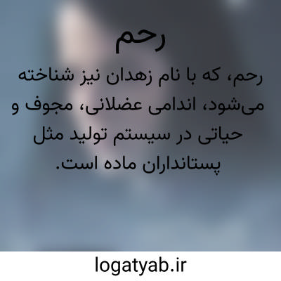 رحم. [ رَ ح ِ ] ( ع اِ ) رَحْم. رِحْم. زهدان و آن مؤنث است. ( از اقرب الموارد ) ( منتهی الارب ). جای کودک در شکم و آن را زهدان گویند. ( از منتخب اللغات ) ( غیاث اللغات ) ( آنندراج ) ( ناظم الاطباء ) ( مهذب الاسماء ) ( لغت فرس اسدی ) ( دهار ). زهدان. ( ترجمان القرآن ترتیب عادل ص 51 ) ( از نصاب الصبیان ). جای کودک درشکم مادر و زهدان و زهگیر و تون و گوشه و بچه دان و بون و شَسْن و یوگان و پویگان و بوگان و زاقدان و بوهمان. ( ناظم الاطباء ). یوگان. ( لغت فرس اسدی نسخه خطی نخجوانی ). بچه دان. مهبل. تخمدان. ( یادداشت مؤلف ).جای بزرگ شدن بچه در شکم. ( از اقرب الموارد ). جای کودک در شکم مادر. عضوی عضلانی و مجوف که دارای جداری ضخیم و قابل انقباض است و برای جا دادن و نمو تخم ( تخمک لقاح شده ) بکار می رود، بدین معنی که تخم بارورشده از شیپور رحم که دهانه اش مجاور تخمدان است خارج و داخل محوطه رحم می شود. محل رحم در وسط لگن بین مثانه و راست روده و در داخل شیپورها و بالای مهبل و در پایین روده های نازک و قولون لگنی می باشد. ( فرهنگ فارسی معین ): معقومة؛ رحم بسته که قبول آبستنی نکند. ( منتهی الارب ). قرار مکین؛ رحم مادر. ( ترجمان القرآن ): و آدمی از آن روز که در رحم نطفه گردد تا آخر عمر یک لحظه از آفت نرهد.( کلیله و دمنه ). در کتب طب چنین یافته می شود که آبی که اصل آفرینش فرزند آدم است چون به رحم پیوندد و به آب زن بیامیزد تیره و غلیظ شود. ( کلیله و دمنه ).