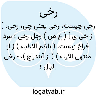 رخی. [ رُخ ْ خی ] ( ص نسبی ) منسوب است به رُخ، و به گمان من همان ریخ معروف در افواه عوام باشد که ناحیه ای است در نیشابور. ( از انساب سمعانی ).