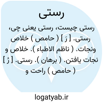 رستی. [ رَ ] ( حامص ) خلاص ونجات. ( ناظم الاطباء ). خلاص و نجات یافتن. ( برهان ).