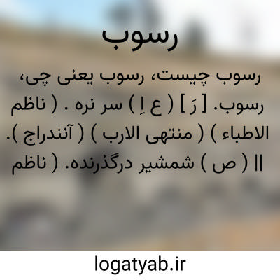 رسوب. [ رُ ] ( ع اِ ) دُرد. لِرد. ته نشست. در طب هر جوهری غلیظ از مائیه هرچند بر روی آب ایستد یا در میان علو و سفل باشد. ( یادداشت مؤلف ). هر چیز که در تک آب و شراب و بول و هر مایعی فرونشیند. دُرد. دردی. ( ناظم الاطباء ) ( از فرهنگ فارسی معین ). چیزی که در ته آب و شراب و بول و مثلهم فرونشیند، آنرا در فارسی دُرد گویند، مگر صاحب کشف به فتح نیز نوشته. ( غیاث اللغات از منتخب اللغات و کشف اللغات ). هرچه در ظرف از دُرد مایعات ته نشین شود. و در اصطلاح پزشکی هر مایعی را گویند که غلیظتر از بول و متمیز از آن باشد اعم از اینکه در وسط یا بالای ظرف قرار گیرد. رسوب بر سه قسم است: اول آنکه در ظرف ته نشین می شود و رسوب راسب نامیده می شود. دوم آنکه در وسط ظرف پیدا میشود و رسوب متعلق نامیده میشود. سوم آنکه در بالای ظرف قرار دارد و آن را غمام و سحاب و رسوب طافی گویند. و باز رسوب به طبیعی و غیرطبیعی تقسیم می شود و رسوب طبیعی را رسوب فاضل و خوب، و رسوب غیرطبیعی را رسوب پست گویند. ( ازکشاف اصطلاحات الفنون ). و رجوع به همین مأخذ شود.