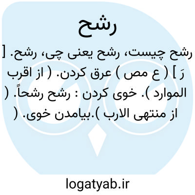رشح. [ رَ ] ( ع اِ ) رشیح. عرق. ( مقدمه لغت جرجانی ص 3 ). عرق. خوی. ( یادداشت مؤلف ).