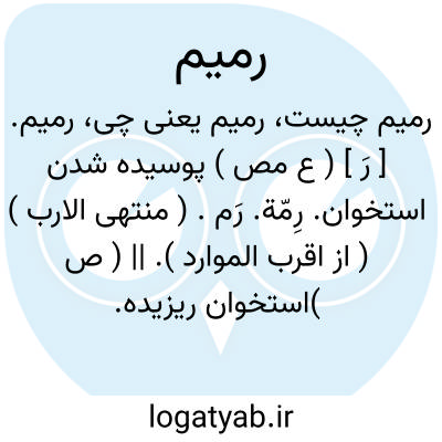 ( صفت ) پوسیده کهنه جمع رمام: عظم رمیم.