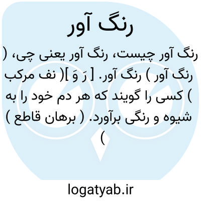 ( رنگ آور ) رنگ آور. [ رَ وَ ]( نف مرکب ) کسی را گویند که هر دم خود را به شیوه و رنگی برآورد. ( برهان قاطع ) ( ناظم الاطباء ). ابن الوقت. || فریب دهنده. محیل. ( برهان قاطع ) ( ناظم الاطباء ). آنکه هر دم رنگی نماید و مردم را فریب دهد و آن را رنگ فروش نیز گویند، و رنگ روش نیز مخفف آن است. ( از آنندراج ). و رجوع به رنگ فروش و رنگ روش شود.