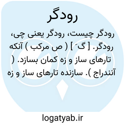 رودگر. [ گ َ ] ( ص مرکب ) آنکه تارهای ساز و زه کمان بسازد. ( آنندراج ). سازنده تارهای ساز و زه کمان. ( ناظم الاطباء ):