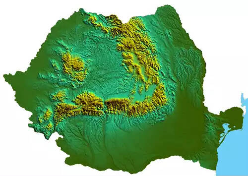 2- در مشرق و در جنوب کارپات جلگه وسیع والاشی و مولداوی گسترده شده است که رومانی را کشوری کشاورزی میسازد. گندم و ذرت محصول اصلی این کشور است و در روی تپه های مرتفعتر درختان میوه کاشته می شود. در دامنه کوهها گله های متعدد گوسپندان تربیت و نگهداری می شوند. از کانهای اصلی آن نفت است که روز بروز بر استخراج آن می افزایند و از این حیث در ردیف دول درجه اول بشمار می رود. در دامنه کوههای کارپات، کانهای آهن، بوکسیت و غیره نیز اهمیت دارد. از صنایع رومانی ساختن ماشینهای صنعتی و فلاحتی و پارچه بافی است. پایتخت رومانی بخارست است، و شهرهای اصلی و مهم آن کلوج، یاشی، پلوئشتی، تیمی شوآرا و بندر معروف آن کنستانتا در ساحل بحر اسود است.