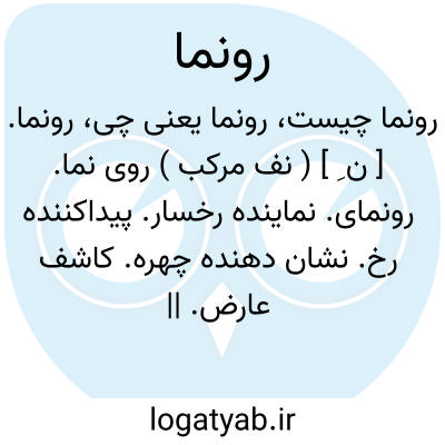 رونما. [ ن ِ ] ( نف مرکب ) روی نما. رونمای. نماینده رخسار. پیداکننده رخ. نشان دهنده چهره. کاشف عارض. || ( اِ مرکب ) رونما. روی نما. هدیه ای که عروسان را دهند. ( شرفنامه منیری ) ( از آنندراج ). کنایه از هدیه ای است که در وقت دیدن روی عروس دهند. ( انجمن آرا ) ( از برهان ). هدیه ای که داماد یا پدر داماد، عروس را دهند گاه دیدار روی او بار اول. ( یادداشت مؤلف ):