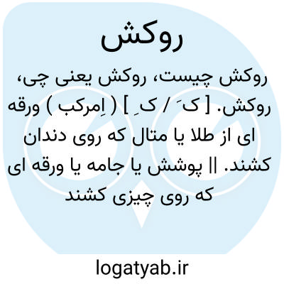 روکش. [ ک َ / ک ِ ] ( اِمرکب ) ورقه ای از طلا یا متال که روی دندان کشند. || پوشش یا جامه یا ورقه ای که روی چیزی کشند چنانکه نجاران بر روی میز یا در و غیره. فورمیکارا. ( از یادداشت بخط مؤلف ). || کاغذ یا پارچه ای که بدان چیزی را بپوشانند. ( فرهنگ فارسی معین ).