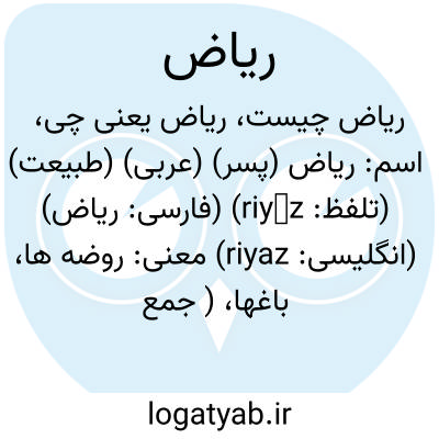 معنی: روضه ها، باغها، ( جمع رَوضَه )، ( اعلام ) ) شهر، پایتخت کشور عربستان صعودی، ) ریاض ( محمد ریاض ) [، شمسی] ادیب پاکستانی، در رشته ی زبان و ادبیات فارسی از دانشگاه تهران مدرک دکتری گرفت و در شمار استادان زبان اردو و پاکستان شناسی این دانشگاه قرار گرفت، همچنین، ریاست گروه اقبال شناسی دانشگاه اقبال اسلام آباد را بر عهده داشت، مقالاتی چند در زمینه ی زبان و ادبیات فارسی، اقبال شناسی و ایران شناسی در مجلات ایران، پاکستان و هند به چاپ رساند، ) ریاض رازی ( حسین ریاض رازی ) [ هجری قمری] شاعر ایرانی در زمینه ی مالیات و کشاورزی اطلاعات زیادی داشت، از این رو، در تحصیل مالیات و اجاره به وی مراجعه می کردند، از آن پس، به میرزا حسین ممیز مشهور شد، تنها اثرش وسیلة النجات بود، ) ریاض همدانی ( میرزا جعفر ) [؟، قمری] خوشنویس، ریاضی دان، و موسیقیدان عهد ناصری، ملقب به بدیع الزمان دوم، خطی زیبا داشت و به شعر عربی و فارسی، ریاضیات، پزشکی و موسیقی مسلط بود، مدتی نیز منشی سفارت انگلیس بود، از آثار اوست: رساله در موسیقی، ریاض الادب، و گنج شایگان به سبک گلستان سعدی