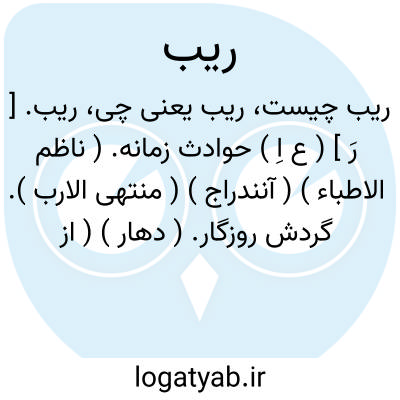 ریب. [ رَ ] ( ع اِ ) حوادث زمانه. ( ناظم الاطباء ) ( آنندراج ) ( منتهی الارب ). گردش روزگار. ( دهار ) ( از اقرب الموارد ). حوادث روزگار. ( صراح اللغة ).