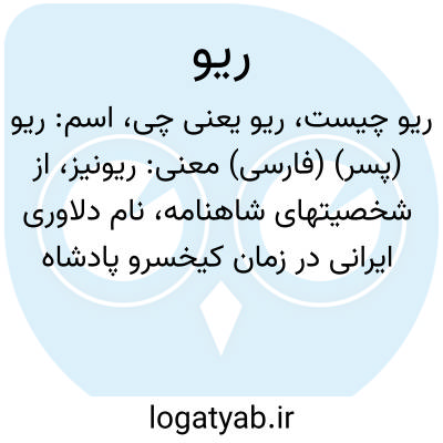 ریو. [ وْ ] ( اِخ ) نام پسر کاوس. ( ناظم الاطباء ). نام پسر کیکاوس که داماد طوس بود و بر دست فرودبن سیاوش کشته شد. ( برهان ) ( آنندراج ) ( از فرهنگ جهانگیری ) ( از انجمن آرا ) ( از شرفنامه منیری ):