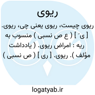 ریوی. [ ری ] ( ص نسبی ) منسوب است به ریو که محله ای است به بخارا. ( از لباب الانساب ).