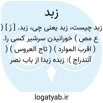 زبد. [ زَ ] ( ع مص ) خورانیدن سرشیر کسی را. ( اقرب الموارد ) ( تاج العروس ) ( آنندراج ): زبده زبدا از باب نصر؛ سرشیر خورانید او را. ( ناظم الاطباء ). || حقیقت معنی آن اعطاء زبد است. ( اقرب الموارد ). || جنبانیدن مشک شیر را تا مسکه برآید. ( ناظم الاطباء ) ( اقرب الموارد ). شیرزنه جنبانیدن تا مسکه برآرد. ( دهار ). || آمیختن سویق با مسکه. ( اقرب الموارد ). از باب ( ضرب ) آمیختن سویق با زُبد. ( المنجد ). || ساختن کره. ( از دزی ج 1 ). || کف برآوردن دریا. ( متن اللغه ). || کمک کردن. ( لسان العرب ). || اندک دادن و فعل از ضرب، یقال: زبد له؛ یعنی داد او را اندک از مال. ( منتهی الارب ). اندک دادن. ( آنندراج ). و زبدت الرجل و زبدت له زبدا ( از باب ضرب )؛ عطا کردم من آن مردرا اندک از مال. ( ناظم الاطباء ). زبد له ( از باب ضرب )؛ اندکی از مال بدو بخشید. ( اقرب الموارد ). زبد له؛یعنی بخشید بدو اندک بخشیدن از مال خود. ( ترجمه قاموس ). || ( اِ ) اندک مال. ( منتهی الارب ) ( آنندراج ). || رفد. عطاء. ( لسان العرب ). و فی الحدیث انا لانقبل زبد المشرکین؛ ای رفدهم و هو العطاء. و خطایی گوید: گویا این حدیث منسوخ باشد زیرا پیغمبر( ص ) خود هدیه بسیاری از مشرکان را بپذیرفت. ( منتهی الارب ). زبد، رفد و عطاء. و در حدیث است که مردی از مشرکان هدیه ای تقدیم رسول اﷲ کرد، آن حضرت هدیه آن مرد مشرک را نپذیرفت و گفت: انا لانَقْبَل ُ زبدالمشرکین. ( تاج العروس ). رفد و عطاء است و از این معنی است ( حدیث ): «نهی عن زبدالمشرکین ». ( اقرب الموارد ).