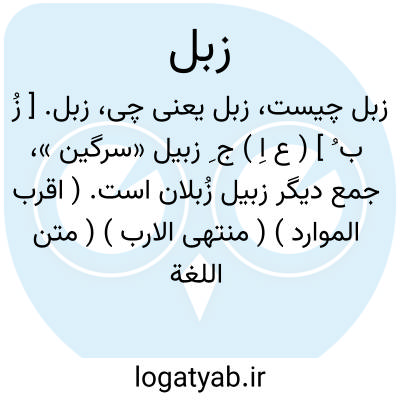 زبل. [ زِ ] ( ع اِ ) سرگین.( اقرب الموارد ) ( دهار ) ( متن اللغة ) ( بحر الجواهر ). سرگین اسب و غیره. ( غیاث اللغات ). زبل سرگین ( سرجین ). و در حدیث عمر است که زنی ناشزه را بفرمود تا در زبلدان زندانی کنند. ( از نهایه ابن اثیر ). زبل و زبیل سرگین است و مزبله جای افکندن آن. ( شرح قاموس ). سرگین. سرجین. سرقین. ( مقدمة الادب چ لایپزیک ص 22 ). به لغت سریانی جنس او ( افکنده حیوانات ) را «ازبلادها» گویند... و آنچه از سگ پیدا آید، بسریانی «ازبلاد کلبا» گویند و خر و سوسمار را «ازبلادخودانا» و خر موش را «ازبلادعفیرا» گویند. ارحانی گوید: افکنده جمله حیوانات که بپارسی او را سرگین گویند. خشک کننده است مر جراحتها را از مزاج، و عضو که مجاور او شود، گرم کند. ( از صیدنه بیرونی ذیل: خرو ). زبل بپارسی سرگین گویند و مختلف بود بسبب اختلاف حیوانات و اختلاف اشخاص... و مجموع زبلها محلل و مسخن و مجفف بود. ( اختیارات بدیعی ). افکنده. ( ترجمه صیدنه بیرونی ). بعر. اختیارات. بشک. ( صیدنه ). ( بشکل ). پلیدی. ( مقدمة الادب ). پیخال. چلغوز. ( برهان قاطع ): خثاالبقر؛ زبل گاو است. ( اختیارات بدیعی ). ضریر. ( تحفه حکیم مؤمن ) ( ترجمه صیدنه ). ذرق. ( اختیارات بدیعی ). عذرة. ( مقدمة الادب زمخشری ). غائط. ( مقدمة الادب ). فضلة. گندگی: