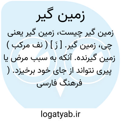 زمین گیر. [ زَ ] ( نف مرکب ) زمین گیرنده. آنکه به سبب مرض یا پیری نتواند از جای خود برخیزد. ( فرهنگ فارسی معین ). کنایه از چیزی که از جای خود نتواند جنبد... ( آنندراج ). مبتلا به فالج و بر جای مانده. ( ناظم الاطباء ). افکار. زمن. حارض. احریض. محرض.حرض. معقد. ( یادداشت بخط مرحوم دهخدا ):